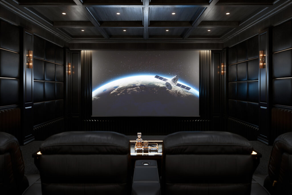 Nous proposons la création d’un home-cinéma personnalisé avec une configuration en son Dolby Atmos et des écrans TV sur-mesure. En intégrant notre système audio Techno-Sound® derrière les murs et plafonds, ils deviennent ainsi un diffuseur sonore géant, comme au cinéma.